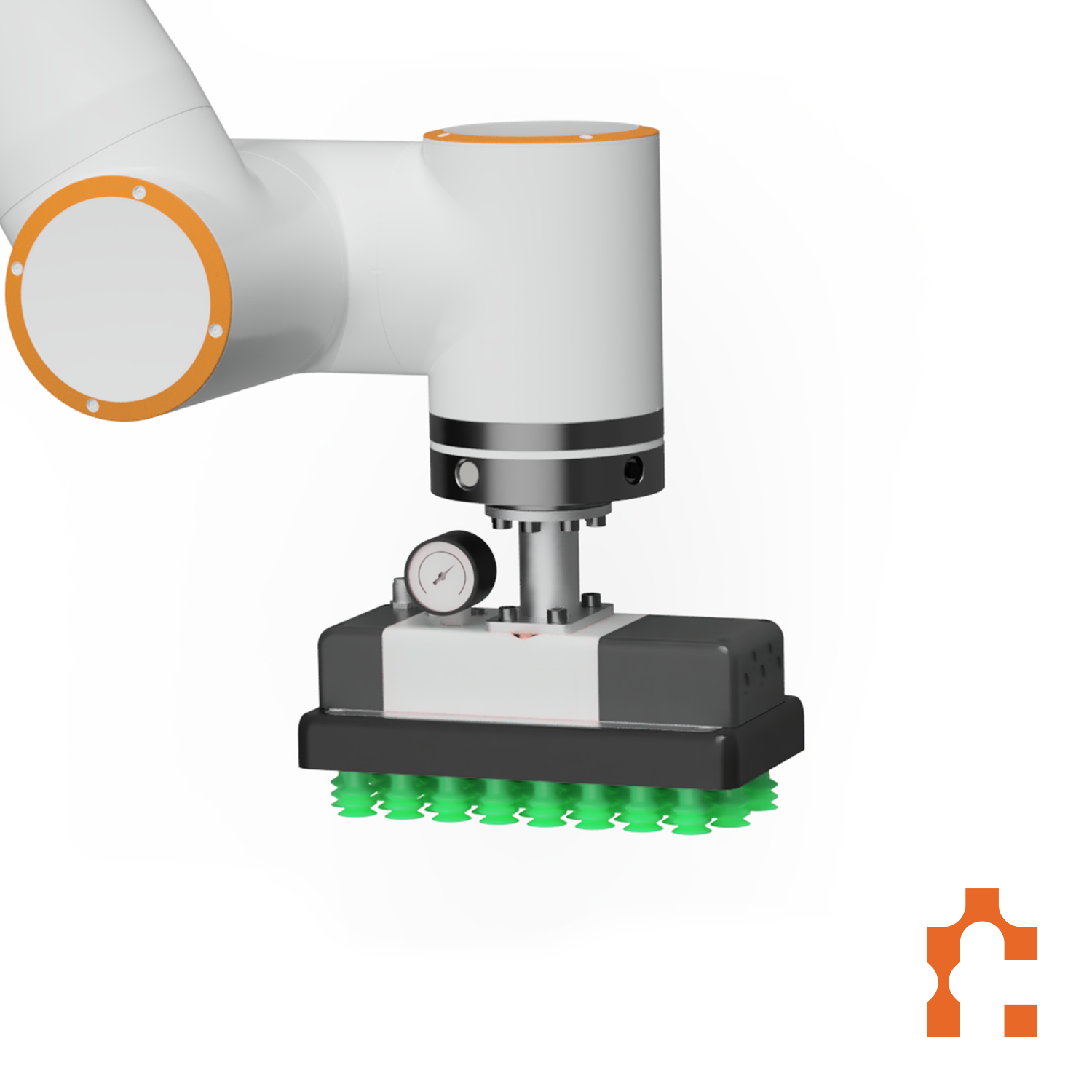 Tout le matériel de montage et les connecteurs nécessaires sont inclus. Ce préhenseur à vide est entièrement compatible avec les cobots Fairino et les robots Universal. Vous souhaitez savoir si ce préhenseur est également compatible avec d'autres marques ? Contactez-nous.
